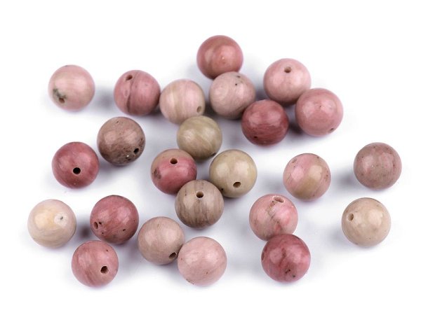 [Minerální korálky z rodonitu] jsou oblíbené především šperkaři pro svou jedinečnou barvu. Svou velikostí jsou ideální na výrobu Buddhových náramků. Jsou oblíbené na techniku drátování, v kombinaci s drahými kovy, ale i s obyčejnými drátky. Skvěle vypadají i na jednoduchých návlekových šňůrách, [které zajímavě ozvláštní.]