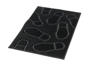Rohož guma. Tenká a pevná gumová rohož vyrobena z černé pryže. Tato gumová rohož se vyznačuje snadnou údržbou, dokonalou ohebností a velmi dlouhou životností. Ideální pro venkovní použití. Díky nepravidelnému a hrubšímu povrchu výborně očiští podrážky bot.