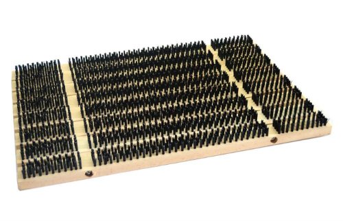 Dřevěná kartáčová rohož vyrobená z kartáčových 9 lišt z kvalitního dřeva, spojených závitovými tyčemi. Dřevěný rošt, do kterého jsou zasazeny tvrdé polyamidové kartáčové štětiny o síle 1 mm. Rozměry 90 x 45cm a výška 4 cm. Dlouhá životnost. Český výrobce. EAN 8594005421622