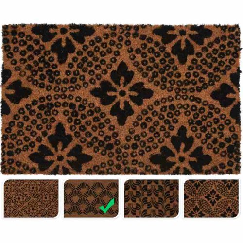 prostorná vzorovaná kokosová rohožka- vyrobena z kokosových vláken, spodní strana z PVC- kokosová vlákna velmi dobře zachycují nečistoty a vlhkost- čisté přírodní vlákno, odolné a nenáročné na údržbu- rozměry: 39 x 59 cm- design rohožky: označen na obrázku