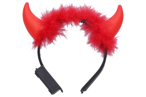 Rohy čertovské blikající s ozdobou 17x17 cm. Součástí baterie 3x LR44(AG13)