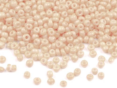Skleněné korálky rokajl jsou jednobarevné a neprůhledné. Vhodné pro tvorbu bižuterie a vánočních ozdob (stromečky z korálků, vánoční ozdoby, navlékané nebo ketlované náhrdelníky, motanice atd.) Rokajl je po obvodu nepravidelný, proto není vhodný pro šitou bižuterii. Výjimkou je technika freeform, kde jejich nepravidelnost naopak oceníte. Korálky č. 841 - [krémové světlé] - mají perleťový lesk. V 50g balení je cca 3100 ks.