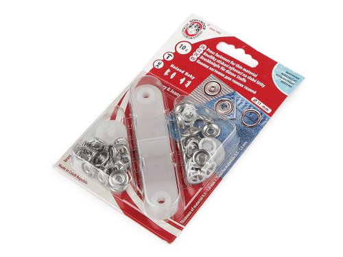 Knoflíky Roland Baby využijete ke [spojování látek, zvládne i silnější látky]. Nýtování se provádí mini lisem, který je součást balení. Vhodné pro tloušťku materiálu 0,5 - 1,8 mm. Jsou nerezavějící.