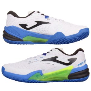Pánské tenisové boty JOMA Roland Men 2402 jsou navržené pro pravidelné a výkonnostní hráče a jsou vhodné na antukový povrch. Svršek je vyrobený z lehkého a prodyšného nylonu s perforací VTS, aby boty poskytovaly co nejlepší odvětrávání. Pro dosažení potřebného přizpůsobení se noze je na strategických místech tepelně utěsněný syntetický materiál JOMA SPORTECH. Tomu dopomáhá i zpevněný střih s polstrovaným jazykem a šněrováním PERFECT FIT. Ve špičce se nachází vstřikovaná guma technologie PROTECTION k jejímu zpevnění a větší ochraně při nárazu. Mezipodešev je vyrobena z lehkého, pružného phylonu s technologií STABILIS pro maximální odpružení, stabilitu a pohodlí při hře. Podešev DURABILITY je vyrobená z odolné pryže, která poskytuje vysokou úroveň odolnosti vyžadovanou na kurtech i s tvrdým povrchem.