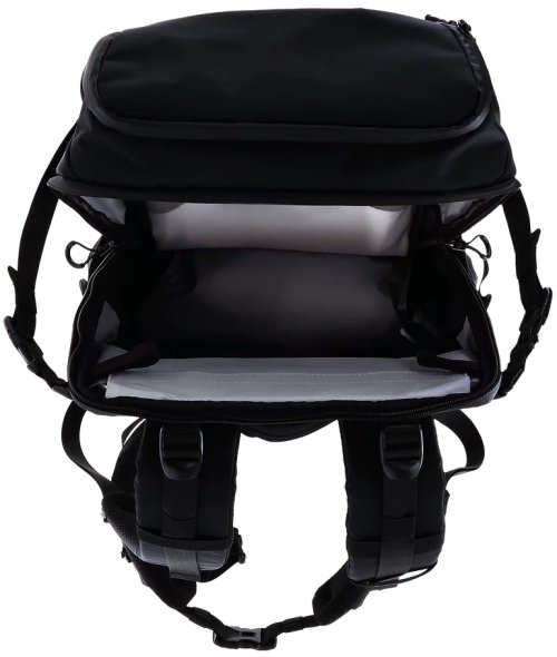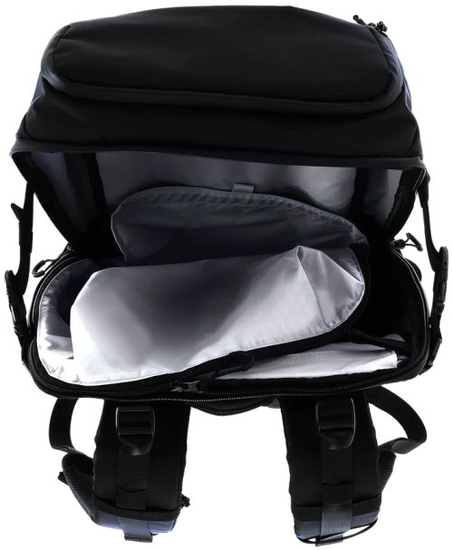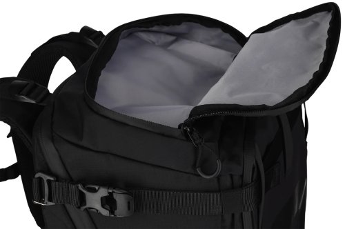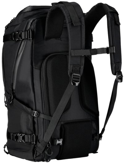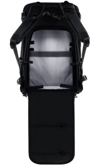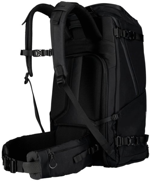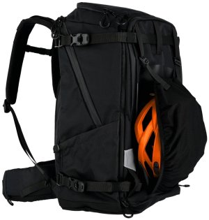 Na přední straně je skryté nosné síťování pro přepravu helmy nebo bundy. Boční strany batohu mají univerzální držáky vhodné pro stativ, trekingové hole nebo láhev s vodou. Všechny zipy jsou voděodolné a batoh obsahuje pláštěnku proti dešti schovanou ve spodní části.