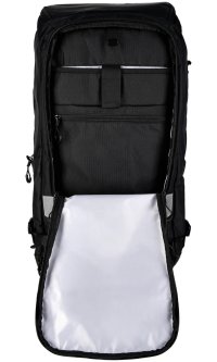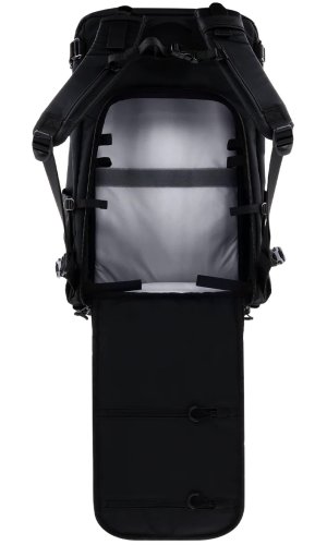 Hlavní komora o objemu 35 litrů disponuje dvěma přístupy – můžete ji otevřít shora bez nutnosti pokládat batoh, nebo ji rozložit zezadu pro pohodlný přístup k celému obsahu. Vyjímatelná přepážka umožňuje oddělit fotografickou výbavu od ostatních věcí nebo ji zcela odstranit a vytvořit jeden velký prostor. Přední kapsa nabízí vyhrazené oddělení pro laptop nebo tablet do 16" a další menší kapsy pro kabely, akumulátory a drobné příslušenství.