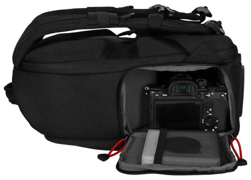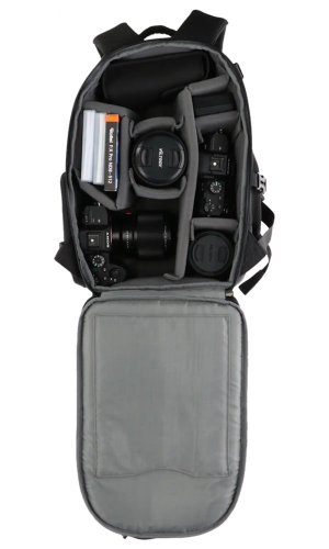 Kompaktní fotobatoh nabízí ideální ochranu pro vaše zařízení. Díky vnitřnímu objemu 12 l a přihrádce pro tablet s úhlopříčkou až 7,9" můžete mít veškeré vybavení vždy u sebe. Odolný materiál zajistí dlouhou životnost a vnitřní polstrování zase dostatečnou ochranu před poškozením obsahu. K maximálnímu pohodlí přispěje prodyšná zadní část a nastavitelné popruhy. V případě nepříznivého počasí zajisté potěší pláštěnka umístěná ve spodní části, která celý batoh i jeho obsah ochrání před namočením. Batoh je vyrobený z recyklovaných plastových lahví a je tak šetrnější vůči životnímu prostředí.