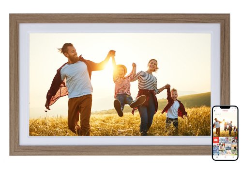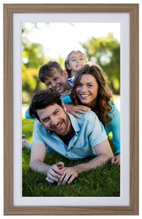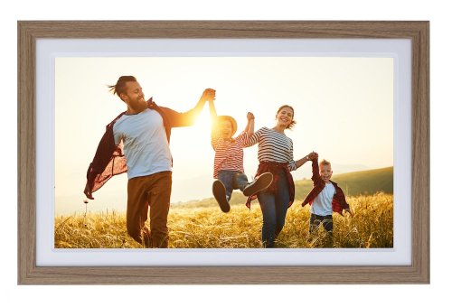 Rámeček vyniká velkým 32GB interním úložištěm pro tisíce fotografií a videí, které lze doplnit externí SD kartou až do 128 GB. Stylový design v dřevěné optice dubu s bílým paspartou dokonale zapadne do každého interiéru.