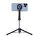 Všestranný magnetický selfie stativ s rozmanitými možnostmi použití kombinuje funkce mini stativu a selfie tyče pro dokonalý záběr v každé situaci. Jako stativ nabízí nastavitelnou výšku 29 až 64,3 cm, což je ideální pro skupinové fotografie, fotografování krajiny nebo videozáznamy s pevnou polohou. Po změně na selfie tyč nabízí nastavitelnou délku 30,6 až 73 cm. Flexibilní výklopný držák smartphonu s konektorem MagSafe umožňuje rychlé a bezpečné upevnění smartphonu s magnetickou zadní stranou. Samozřejmostí je možnost optimální orientace telefonu na výšku i na šířku. Noha stativu má navíc integrovaný magnet pro udržení Bluetooth dálkového ovládání, které lze v případě potřeby vyjmout a pohodlně pořizovat fotografie a videa na dálku.