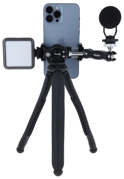 Flexibilní stativ určený pro smartphony, akční kamery a fotoaparáty. Díky ohebným nohám můžete stativ upevnit prakticky kamkoliv a vytvářet kreativní záběry z jakéhokoli úhlu. 360° kulová hlava umožňuje přesné zaměření a stativ je vybaven dvěma Cold Shoe adaptéry (sáňky), které umožňují připojení osvětlení nebo mikrofonu. S univerzální kompatibilitou je ideální pro smartphony, akční kamery i digitální fotoaparáty. Díky kompaktní velikosti a nízké hmotnosti je skvělým doplňkem pro fotografy v terénu i vloggery.