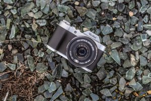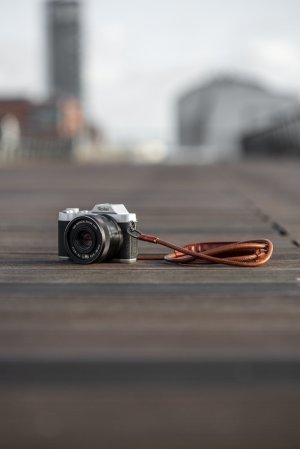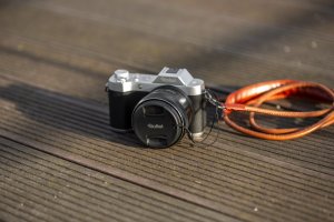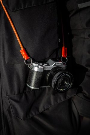Součástí balení je USB-C kabel, baterie, popruh na přenášení a krytka objektivu s řemínkem.