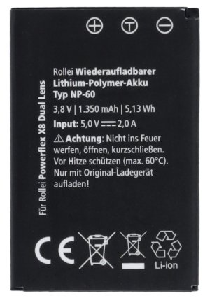 Napájení: lithium-polymerová baterie NP-60 (3,8 V/1350 mAh/5,13 Wh)