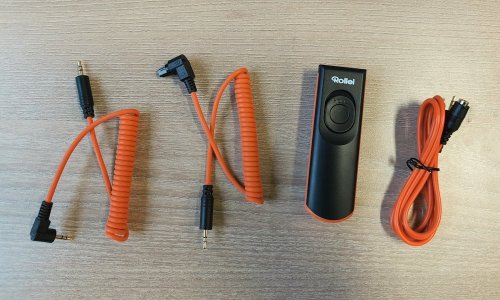 Kabelová spoušť Rollei pro zrcadlovky Canon. Dodávána je s dvojicí kabelových adaptérů (C1 & C2).