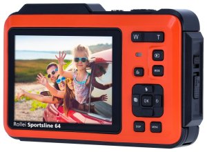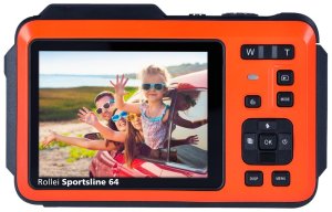 Rollei Sportsline 64 Selfie umožňuje pořizovat fotky se špičkovým rozlišením až 9216 × 6912 px a nahrávat video ve 4K kvalitě. Snímanou scénu lze sledovat na zadním 2,8" displeji, v případě selfie záběrů pak také na předním 2" displeji. Pro ukládání záznamů disponuje slotem pro microSD kartu do kapacity až 64 GB. Záznam se na paměťové karty ukládá ve formátech JPEG a MP4. Zajisté potěší také přehledné menu kompletně v českém a slovenském jazyce. Pro nabíjení a přenos dat je vybaven USB-C konektorem. Fotoaparát je voděodolný do hloubky 5 m. Součástí balení je baterie, USB-C kabel a popruh na zápěstí.