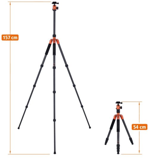 Kompaktní, lehký a odolný stativ vyrobený z osmi vrstev karbonu. Je vybaven praktickými rychloupínáky na uzamčení nožek. Stativ také nabízí možnost otočení středové části pro makro fotografie a použití jako monopod. Stativ je doplněný kulovou hlavou. Součástí balení je také pouzdro na stativ.