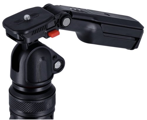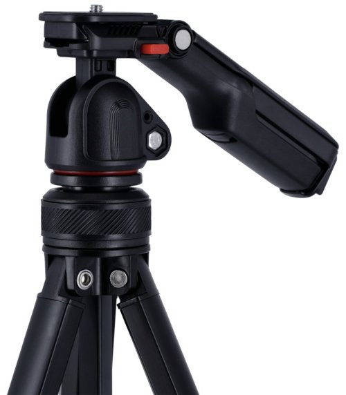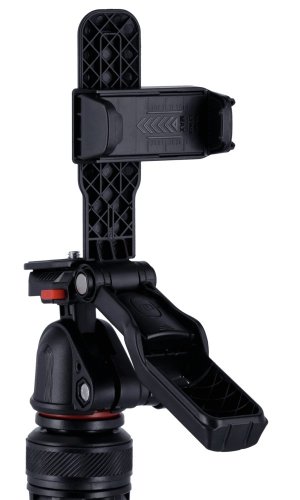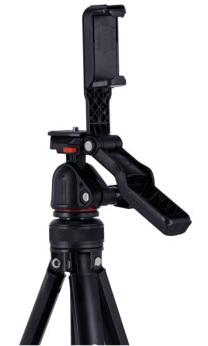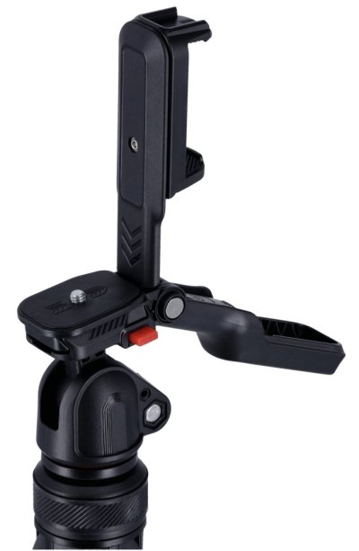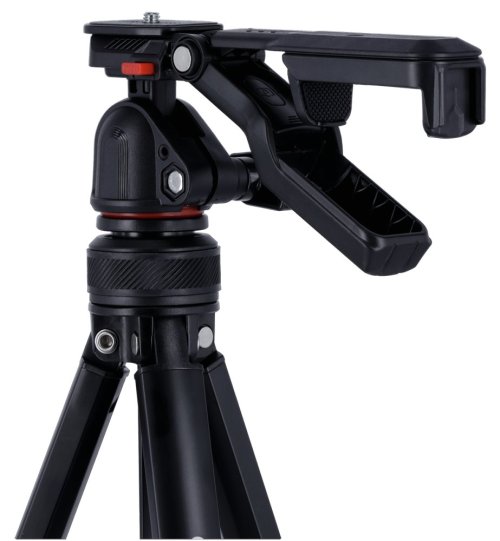 Stativ je vybaven integrovaným držákem na smartphone, který umožňuje stabilní a bezproblémové natáčení s mobilním telefonem. Součástí balení je také Bluetooth dálkové ovládání s dosahem až 10 metrů, které umožňuje pohodlné fotografování a natáčení na dálku bez nutnosti dotýkat se zařízení.