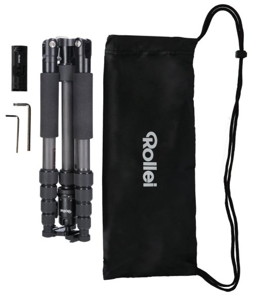 Odlehčený karbonový stativ od společnosti Rollei nabízí hlavu s rychloupínací destičkou. Základnou stativu jsou gumové nožičky, gumové koncovky nožek můžete sejmout a pro lepší stabilitu jej můžete zapíchnout do země. Nožičky stativu jsou výsuvné, ve složeném stavu mají délku 34 cm, v rozloženém 142 cm. Celková hmotnost činí 980 g a stativ unese až 8 kg! Tento kompaktní a robustní stativ ocení každý fotograf. Může být použit také jako monopod.