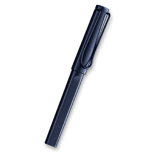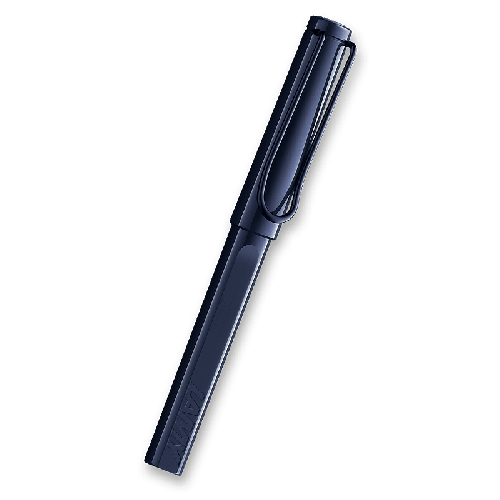 Roller Lamy Safari Dark Dusk má tělo z tvrzeného ABS plastu, nasazovací víčko a odpružený kovový klip. Úchopová zóna je ergonomicky upravená.