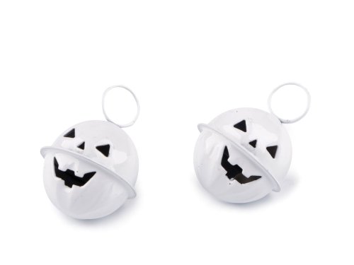 Kovové rolničky v podobě dýně jsou působivou dekorací na Halloween. Ozdobí párty stůl, pytlíky s nadílkou, kostýmy, věnce, dveře apod. Jemně zvoní, nahoře mají kroužek pro provléknutí šňůry či stuhy. [Varianta č. 5 je bez kroužku.]