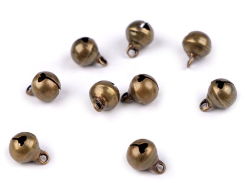 Drobné kovové rolničky standardní kvality, [určeny pouze] k dekoračním účelům - například na vánoční věnce. Zvoní tlumeněji. [Průměr rolniček je cca 7,6 mm, může se mírně lišit. Průvlek jsou 2 mm. Celková velikost rolničky včetně očka je 11 mm.]