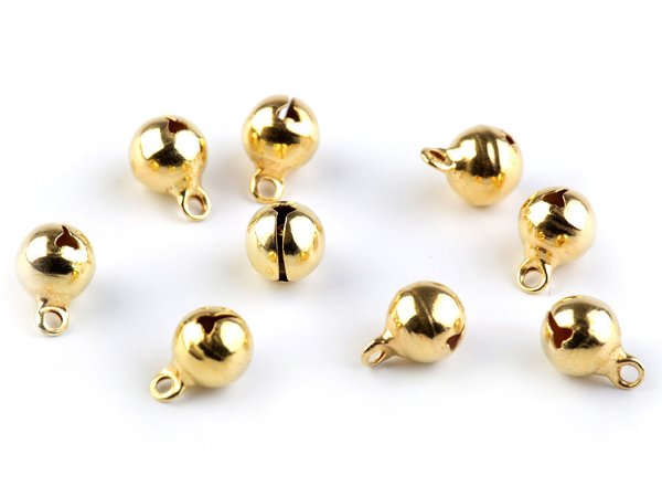 Drobné kovové rolničky standardní kvality, [určeny pouze] k dekoračním účelům - například na vánoční věnce. Zvoní tlumeněji. [Průměr rolniček je cca 7,6 mm, může se mírně lišit. Průvlek je 2 mm. Celková velikost rolničky včetně očka je 11 mm.]