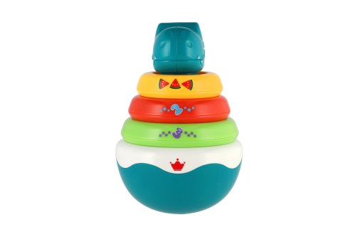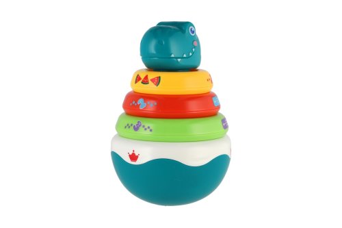 Hračka se zakulaceným podstavcem a rolničkou uvnitř, která vydává příjemný zvuk při pohybu. Podporuje rozvoj zraku, sluchu a koordinaci. Dinosaurus je také skládankou pyramida. Rozměr zvířátka: 16 cm Rozměry balení 13 x 20 x 11 cm. Vhodné pro děti od 6 měsíců.