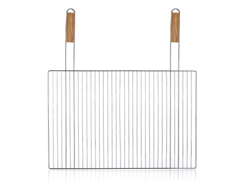 Hranatý grilovací rošt BBQ s dřevěnými rukojeťmi využijete pro snadné grilování masa, zeleniny apod. Je vhodný také pro zděné zahradní grily. Rošt je vyroben z pochromované oceli, počet drátů na roštu je 34 kusů.