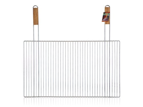 Hranatý grilovací rošt BBQ s dřevěnými rukojeťmi využijete pro snadné grilování masa, zeleniny apod. Je vhodný také pro zděné zahradní grily. Rošt je vyroben z pochromované oceli, počet drátů na roštu je 34 kusů.