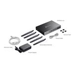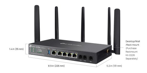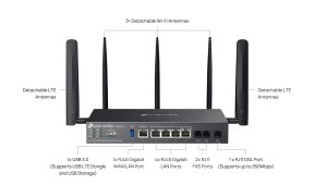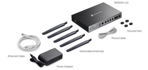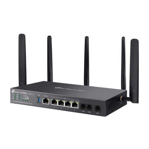 Router TP-Link DR3650v-4G kombinuje Wi-Fi 6 AX3000, 4G+ Cat6 připojení a širokou škálu portů pro maximální flexibilitu. Nabízí rychlost až 2402 Mb/s na 5 GHz a 574 Mb/s na 2,4 GHz, podporu VDSL2 35b 350 Mb/s a 2× nano SIM sloty pro LTE zálohu. Ideální řešení pro stabilní připojení v domácnostech i firmách s podporou VPN a centrální správou přes Omada SDN.