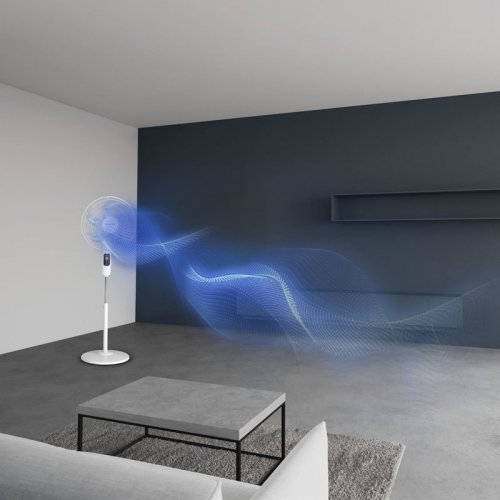 Extrémně tichý provoz při pouhých 35 dB(A) na minimální rychlosti činí z tohoto ventilátoru ideálního partnera pro nerušivé použití během spánku, práce nebo odpočinku. Osm rychlostních stupňů vám umožní přizpůsobit intenzitu proudění vzduchu podle aktuálních potřeb - od jemného vánku až po silný osvěžující proud.