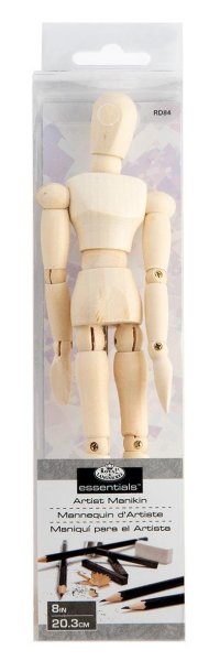 Dřevěný manekýn z kvalitního dřeva - muž. Dřevěná figurína se využívá ke studiu tvarů lidského těla při kresbě, malbě, modelování a podobných uměleckých technikách. Funkční pomůcka se může ohýbat díky 14 pohyblivým kloubům do žádaného tvaru. Každá noha má tři klouby, ruce mají tři klouby, trup s pasem a trup s hlavou jsou také spojeny kloubem. Postava může imitovat chůzi, běh, různé postoje. Figurína má stojan, díky kterému pevně stojí v jakémkoli postoji. Výborná pomůcka pro začínající umělce při sledování lidských proporcí.