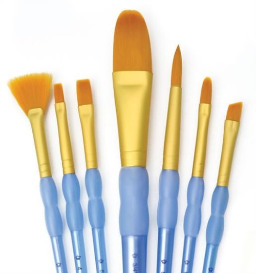Špičková sada vysoce kvalitních štětců. Zlaté syntetické vlasy , světle modré plastové držadlo a hliníková úchytka ve zlaté barvě. Ideální pro začátečníky, laiky či studenty.