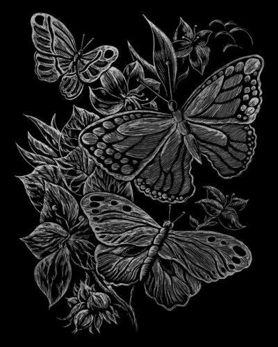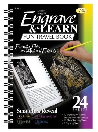 Škrabací obrázky jsou oblíbené napříč generacemi. Přiloženým škrabacím perem je třeba vyškrábat linky předtištěného obrázku. Papír je potažený černou vrstvou a ukrývá zlatý, stříbrný, duhový či holografický podklad.