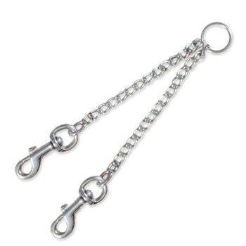 Dva krátké řetízky spojené na jedné straně očkem a na druhé zakončené karabinou, pro snadné připojení k obojkům Vašich psů.
