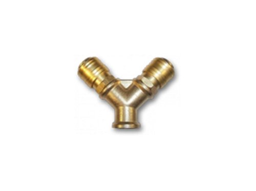 Rozdvojka s vnitřním závitem a dvě rychlospojky pro zahradní hadice.