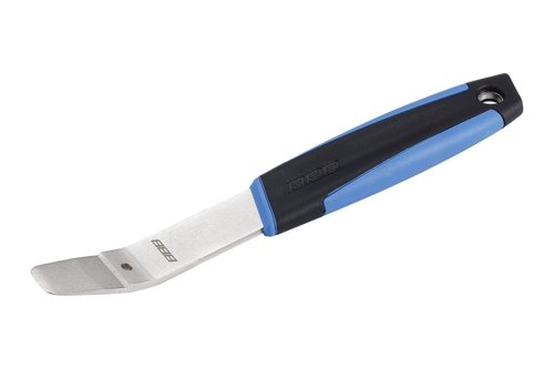 Klínovitý tvar nástroje snadno vklouzne mezi čelisti třmenu.