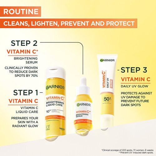 Rozjasňující pleťová esence s obsahem vitamínu C, glycerinu, niaciniamidu a kyseliny salicylové pro hloubkovou hydrataci a jasnější a zářivější pleť.