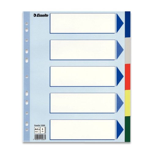 Plastový rozlišovač, vyrobený z tuhého polypropylenu. Jednotlivé listy v různých barvách. Popisovatelný titulní list, multiperforace. Vhodný pro dokumenty A4 v zakládacích obalech - šíře 242 mm,,