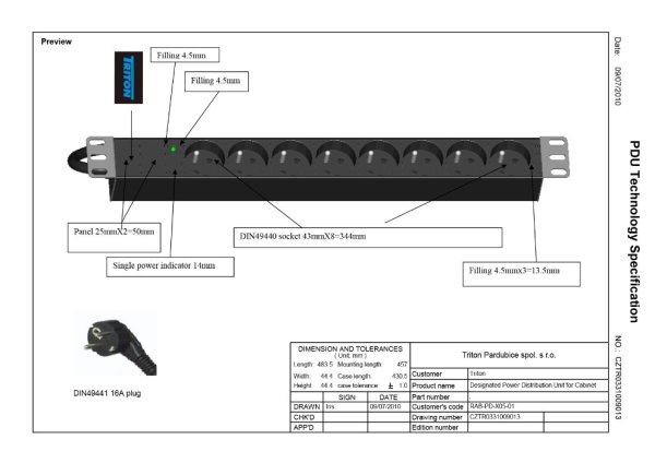 Rozvodný panel Triton (bez vypínače) je vybavený