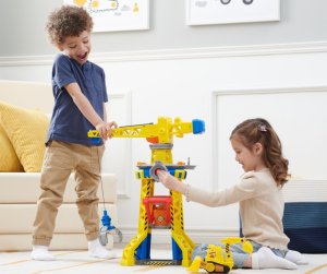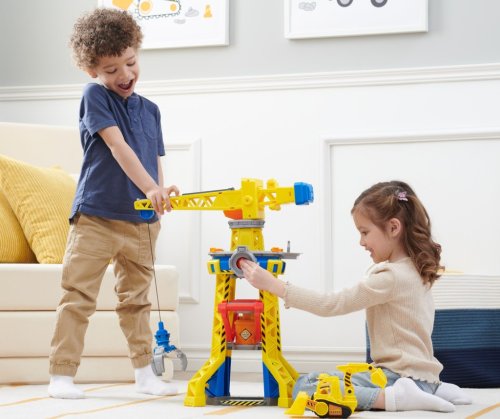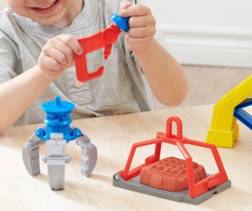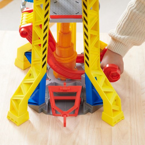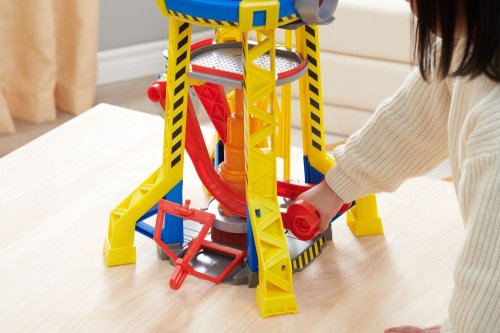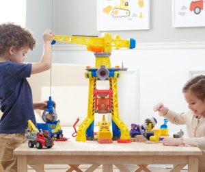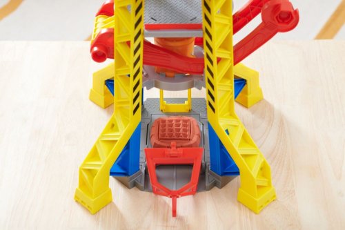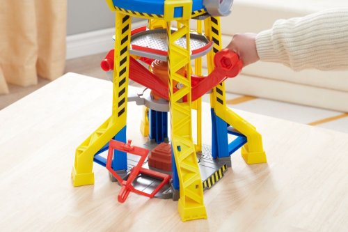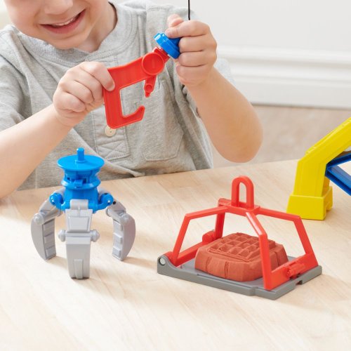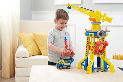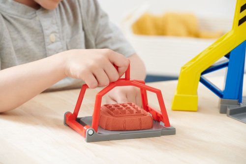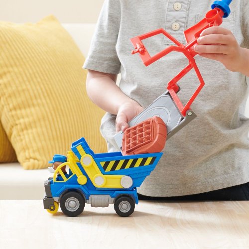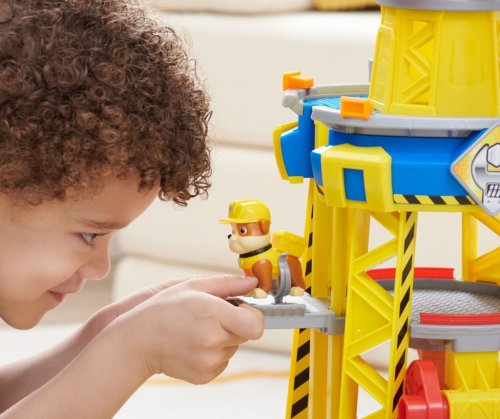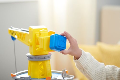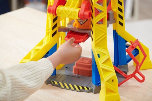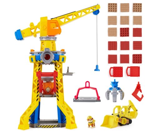 Připravte se na pořádný stavební projekt se svým oblíbeným štěnětem z Tlapkové patroly Rubblem a jeho buldozerem s funkčními stavebními nástroji v herní sadě Rubble & Crew interaktivní jeřáb! Jeřáb vypadá přesně jako v seriálu a obsahuje zábavné dětské stavební stroje, jako je otočný jeřáb s přídavným drapákem, který mohou děti použít k zvedání věcí nahoru a dolů! Součástí sady je také systém pro tvarování kinetického písku Build-It, který umožňuje naplnit dvě oboustranné formy buď červeným, nebo hnědým kinetickým pískem a poté zatažením za obří červenou páku spustit nárazník a vytvořit vlastní stavební bloky, které lze umístit na základní plošinu! Jakmile jsou vaše bloky připraveny, umístěte Rubbla do výtahu a vyvezte ho až na vrchol, do ovládacího modulu jeřábu. Poté pomocí jeřábu zvedněte bloky a přesuňte je tam, kam chcete! Na závěr stiskněte obrovské červené tlačítko v přední části věže, které slouží k rozsvícení světel a přehrávání zvuků a hlášek, které znáte ze seriálu! Ještě více zábavy ze světa seriálu Rubble & Crew vám zajistí stavební náklaďáky, figurky, sady s kinetickým pískem Build-it nebo sada s dílnou, které vám umožní dále rozšířit své staveniště se stavebními stroji (prodávají se zvlášť)! Přiveďte seriál Rubble & Crew k životu pomocí herní sady s interaktivním jeřábem!