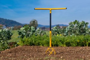 vykopávání a výsadbě, uvolní a odstraní plevel a funguje i jako vidle