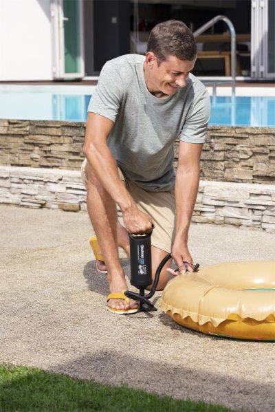 Balení obsahuje ruční pumpu, flexibilní hadici (0,8 m) a 3 ventilové adaptéry.