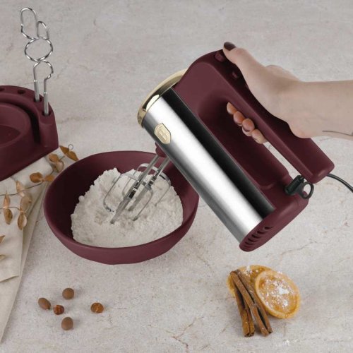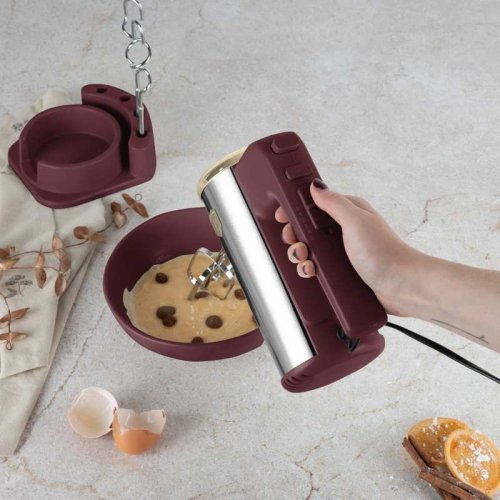 Praktický a elegantní pomocník do každé kuchyně! Tento ruční šlehač v matné bordó barvě kombinuje výkon, funkčnost a stylový design. Díky stojanu a možnosti uložení příslušenství šetří místo a je vždy po ruce.