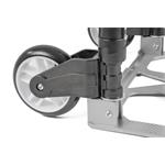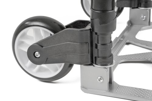 Konstrukce z hliníku a plastu zajišťuje potřebnou pevnost a nízkou hmotnost. Plná kola o průměru 12,5 cm zvládnou jízdu po rovných i mírně nerovných površích, takže se hodí pro použití v interiéru i exteriéru.