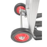 Konstrukce z hliníku je nejen lehká, ale zároveň i pevná. Plná kola o průměru 15 cm zvládnou jízdu po různých typech povrchů, ať už jde o hladkou podlahu nebo mírně nerovný terén.