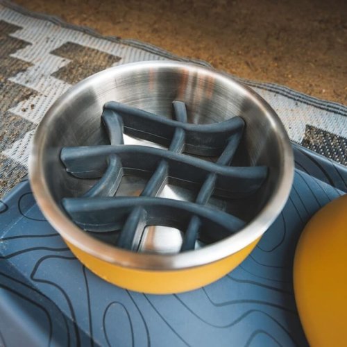 RUFFWEAR Basecamp™ Slow Feeder Insert je příslušenství, které pomáhá rychlým jedlíkům zpomalit a vychutnat si své krmivo. Tento praktický doplněk je vyroben ze silikonu bezpečného pro potraviny. Jednoduše se zatlačí do misky Basecamp™, kam perfektně zapadne. Design je inspirovaný přírodou, vychází ze zamotaných kořenů stromů, a nabízí samostatné oddíly, které podporují pomalejší krmení. Po použití jednoduše vyjměte a vložte do horního koše myčky nádobí pro snadnou údržbu.