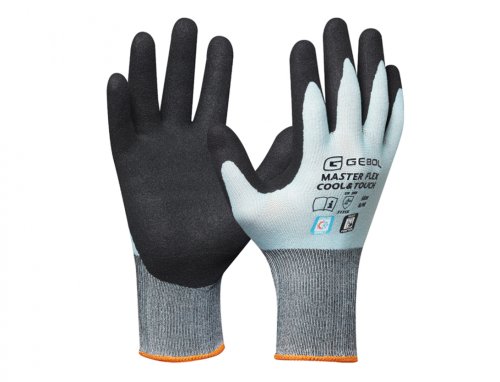 Pracovní, bezešvé rukavice proti pocení rukou. S vláknem Thermatech, které transportuje vlhkost rukou na povrch rukavic, kde se rychleji odpařuje, čímž dosahuje příjemně chladivého efektu. Zesílení dlaní s pískovou povrchovou úpravou umožňuje spolehlivý úchop, měděná vlákna v ukazováčku a palci zase spolehlivé ovládání dotykových zařízení. Chrání ruce před špínou a mechanickými vlivy. Tyto vlasnosti je předurčují pro použití zejména v oblasti montážních prací. Materiál: Nylon, elastan, nitril. Velikost: 10. Barva: černo-modrá.