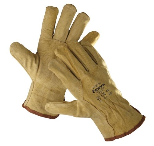 Celokožené rukavice bez podšívky ze štípané vepřovice a s pruženkou na zápěstí. Vellikost XL (10). EN 388 / 2111 ochrana proti mechanickým rizikům (oděr, řez, protžení, propíchnutí). EAN 0000083820113