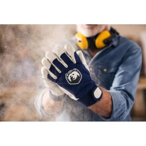 kombinované pracovní rukavice ENPRO použití: průmysl, stavba, přeprava a skladování rukavice šité z jemné lícové ovčiny v dlani modrá bavlněná tkanina na hřbetu manžeta na suchý zip Normy: EN ISO 21420 …