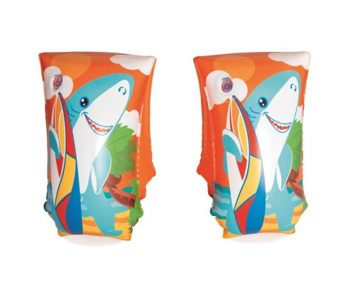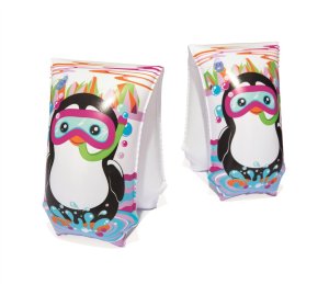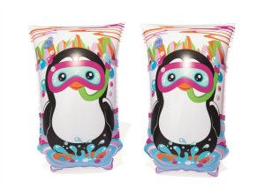 Nafukovací rukávky s veselým designem pro děti od 5 do 12 let o velikosti 30×15 cm.
